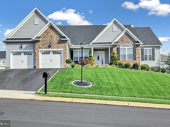 SHOWS LIKE A MODEL AND BETTER THAN NEW! Here’s the four-bedroom ranch home you’ve been looking for! Why wait 6+ months to build, spend more, and then wait again for landscaping? Excellent condition, and owners never wear shoes in this house! The modern floor plan boasts hardwood floors and ceramic tile throughout the open living room, dining room, kitchen and breakfast nook! Kitchen has granite countertops, a two tiered island/bar with sink, and is completely open for you to be a part of all your gatherings! Beautiful windows with plenty of natural light! Breakfast nook leads to large deck overlooking back yard of the half acre property! Gorgeous brick fireplace and cathedral ceiling warm the family/living room! Owner suite with tray ceiling, two walk in closets, soaking tub and separate shower! Four bedrooms include owner suite, bedroom/office with half bath, and two large bedrooms on opposite side of house with full bath! Laundry room is on the main floor too! ONE STORY LIVING at it's finest! But wait there’s more! Bonus room potential for FIFTH BEDROOM or office, unfinished upstairs. Full dry basement with rough in plumbing, perfect for game room, theatre room, exercise room or additional bedroom/guest room or office. Total potential for approximately 5000 finished square feet of living space, designed to your liking! The basement is ready to finish, neat as a pin with high ceilings and walks out level to patio and backyard! Two car garage! The curb appeal with stone front, multiple gables and covered porch is eye catching! Located close to shopping, parks and MD line. You won't want to miss this opportunity to see such an outstanding home!