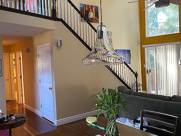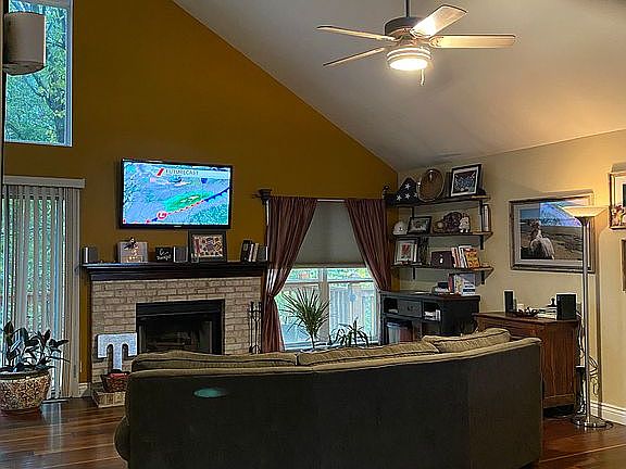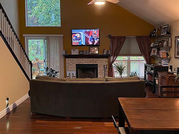 Beautiful 1.5 Story home featuring 3 bedrooms and 2.5 baths on wooded lot. The main floor has an open concept, kitchen with a pantry, dining and family room with a wood burning fireplace. This leads out to a spacious deck with newly replaced decking, and a stairs leading down to an exposed aggregate concrete patio. The main floor entry includes a coat closet and tile floor for those wet days. The 2 car garage entry is here as well. There is a half bath off the hall as well as a linen closet. The large master bedroom with walk in closet and spacious master bath is located on the main floor too. The upstairs has a full bath and 2 more bedrooms. Each bedroom has a walk in closet and there is another hall closet here. The downstairs has a walkout to the patio. There is a cozy carpeted family room with beautiful thermostat controled gas stove stove and an additional rec room perfect for gym equipment or kids playroom. There is 4 additional closets in the basement and more storage in the laundry room.