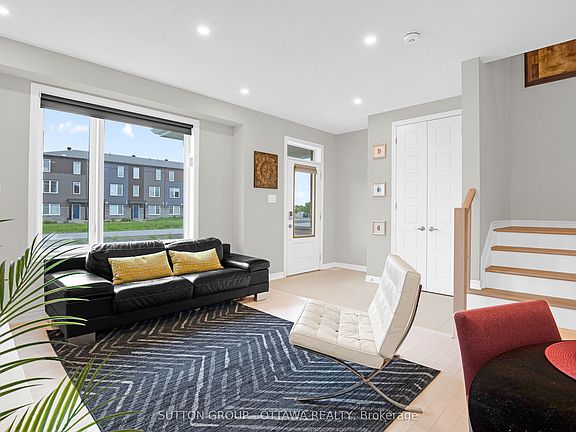 Gorgeous END UNIT DOUBLE GARAGE townhome loaded with OVER $50,000+ in upgrades! This 3 bed, 4 bath gem comes with a BONUS LOFT the size of a bedroom and a FULLY FINISHED BASEMENT. The main floor features a BRIGHT, OPEN-CONCEPT living and dining area with STYLISH UPGRADED LIGHTING. The U-SHAPED KITCHEN is both sleek and functional, offering STAINLESS STEEL APPLIANCES, QUARTZ COUNTERS, a BREAKFAST ISLAND, and a PANTRY. You'll love the 9 FT CEILINGS, 8 FT DOORS, and gorgeous BLEACHED MAPLE HARDWOOD throughout BOTH the main and upper levels, including BOTH STAIRCASES! Upstairs, the SPACIOUS PRIMARY SUITE boasts a WALK-IN CLOSET and PRIVATE EN-SUITE, plus there are TWO MORE GREAT-SIZED BEDROOMS, a FULL BATH, and CONVENIENT UPSTAIRS LAUNDRY. The SUN-FILLED LOFT with WALKOUT BALCONY is perfect for a home office or cozy reading nook. Downstairs, the FINISHED BASEMENT with ANOTHER FULL BATHROOM is ideal for a gym, movie room, or guest space. MOVE-IN READY with tasteful, modern finishes throughout and WALKING DISTANCE to Barrhaven Town Centre, Marketplace, Parks, Schools, Trails, Transit, and EASY ACCESS to HWY 416, this place is the FULL PACKAGE!