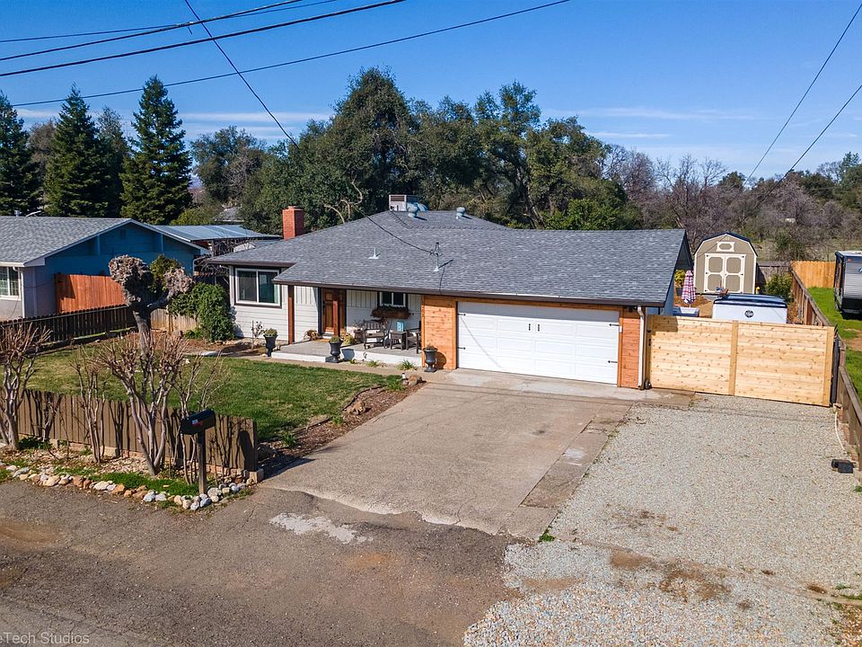 This one is dialed and ready to enjoy. Totally redone inside and out. New roof, complete paint, flooring, complete kitchen and appliances, both baths and much more. Great location to schools and shopping in Town. Hardwood floors, cozy fireplace ,gated RV parking, large rear yard with brand new 10X16 shed.