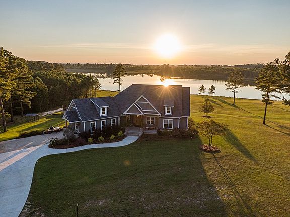 Striking craftsman home with breathtaking views of the lake at Creek Shoals! This 4 bed/3.5 bath home boasts an open concept plan with formal dining room, breakfast nook, and office. The living room features vaulted ceilings with exposed beams, bamboo flooring, and a gas log fireplace. The kitchen has stainless appliances, gas stove, quartz counters, and large island. A cozy screened porch makes a perfect spot to catch awesome sunsets over the lake. The master bedroom/bath suite is on one side of the living space with freestanding tub, separate tiled shower, and double vanities. On the other side, 2 guest rooms share a bath and a 2nd master/ guest suite has a private bath. The west wing of the house hosts a large bonus room and storage as well as an oversized mud room/laundry area. Approximately 9 acres hosts stately pines and a huge back yard (with irrigation system) overlooking the lake for lots of outdoor activity! It's one-of-a-kind! Call Sara Brown at 912-293-2225 to view!