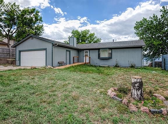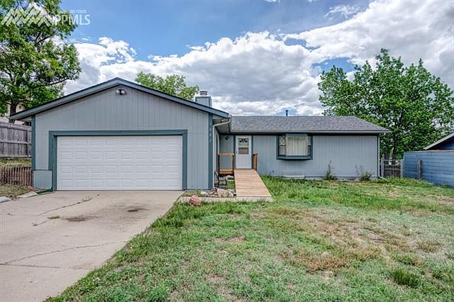This home has an unobstructed amazing view of Pikes Peak! Well maintained rancher near schools, parks and shopping, features 5 bedrooms and 2 bathrooms and 2 living areas with plenty of space! New garage door, new roof, cleaned carpets in the basement, and fresh paint to get you started in your new home. Just minutes from Peterson and Shriever A/F base. On the main level this home has 3 bedrooms, one bathroom, a living are with a wood burning fireplace and french doors. It also features an eat-in kitchen and access to the deck and backyard where you'll see the mountain views. The basement is mostly finished with two bedrooms, one bathroom, large laundry room and the second living area.