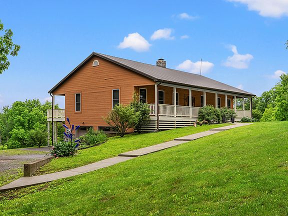 Take a look at this stunning, custom built ranch on almost 10 acres! If you are looking for seclusion & privacy, with easy access to town, this is your new home! This charmer was built & designed with an abundance of love & care. Throughout the home, the cherry floors were handmade by the current owners & harvested from trees located on the property! The walnut cabinets & vanities were also constructed with wood harvested on the property! A gorgeous floor to ceiling stone fireplace located in the open concept living area is the perfect statement piece that makes this home one of a kind and the envy of all your guests! The primary en-suite is bright & cheery with a walk-in cedar lined closet (wood also harvested from the property), & a large and inviting bathroom. The other two bedrooms are spacious as well. The back bedroom features hickory ash hardwood flooring also harvested from the property! The back porch spans the length of the home & offers some of the most breathtaking views of the countryside! The unfinished basement offers unlimited possibilities for hobbies or additional living space! The home was constructed ICF (insulated concrete forms) for added energy efficiency!
