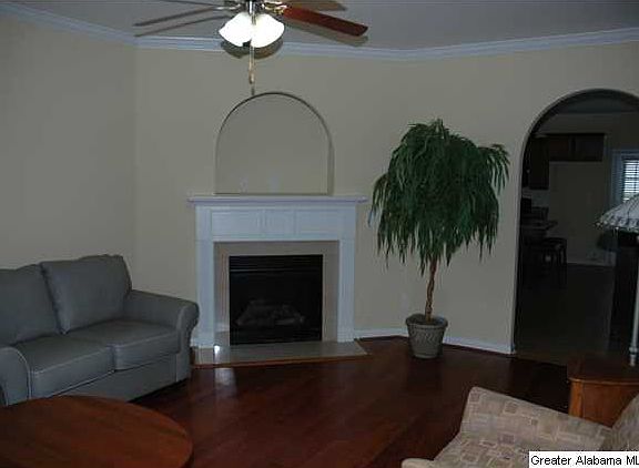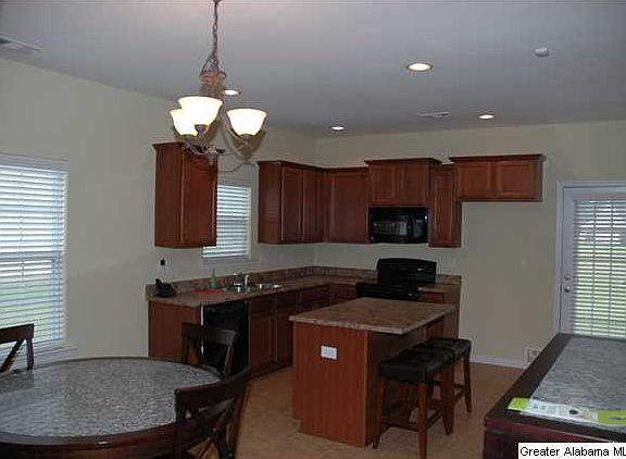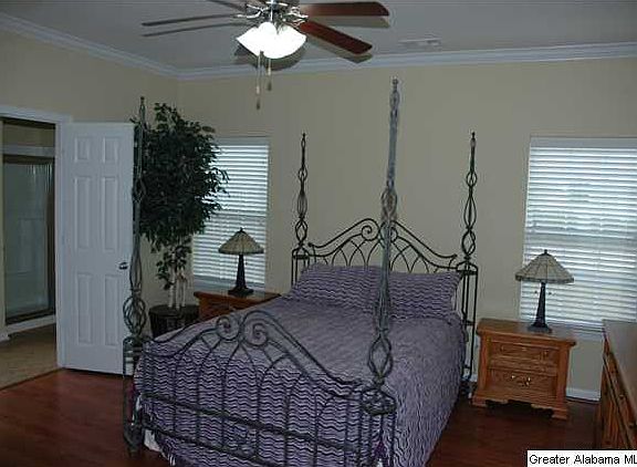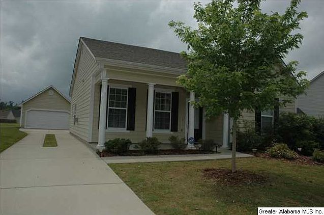 Fabulous 3 bedroom 2 bath garden home in Moody in Kelly Creek which features underground utilities and is located near I20 in St. Clair county. This great home features a large great room with gorgeous hardwood floors, a gas log fireplace that turns on with a flick of a switch, and arched doorways. It boasts a huge kitchen with ceramic tile floors, oak cabinets, an island with a breakfast and a huge eating area and black appliances. The master bedroom is large with hardwood floors, a large walk-in closet a garden tub, separate shower, and ceramic tile. There are 2 other good size bedrooms with ample closet space and a laundry room. There is also a covered front porch with white columns, a covered patio, and a 2 car detached garage with some floored attic for storage. There is a great manicured lawn.