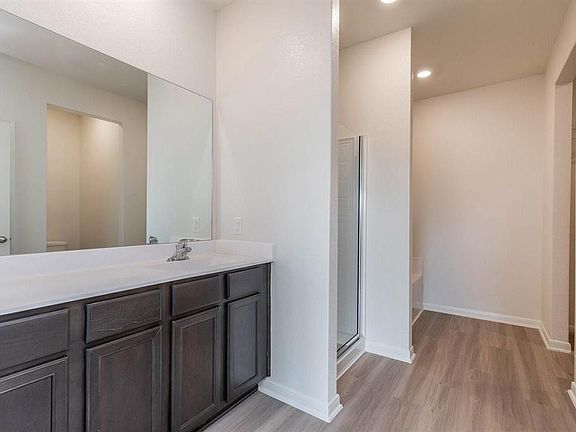 Space and storage abound in the beautiful Driftwood plan offered at Freeman Ranch. Inside this 2-story home with 5 bedrooms and 2.5 baths, you will find over $10,000 in upgrades including a full suite of kitchen appliances, granite countertops and designer flooring. The Driftwood showcases an open floor plan featuring a spacious family room and master suite downstairs, a large game room plus four additional bedrooms upstairs, as well as a fenced backyard and front yard landscaping.