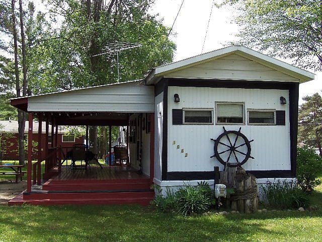 Affordable "up north" get away! Situated on an extra large corner lot with a view of Wixom Lake! Older singlewide has been very well maintained and offers nice updates including the furnace and shower/tub. Spacious living room steps up into the eat in kitchen with appliances included. 2 bedrooms and 1 full bath with washer and dryer. Exterior offers a covered deck perfect for relaxing the day away, fire pit for summer bonfires and a storage shed. The yard offers plenty of room to play or invite your friends and family over and entertain. Bonus....there is a GUEST HOUSE! Adorable wood frame guest house with 1 bedroom, dining area and living room. Has original hardwood plank floors and an old fashioned wood stove. Offer your family their own private space when they visit or let the kids have a play house. Public access to all sports Wixom Lake is just across the street. Start making memories at the lake today! Brokered And Advertised By: HOME WATERS Listing Agent: SONYA LOOSE