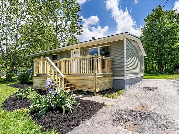 Beautiful & renovated and just waiting for a "New Owner" Located on a dead-end street near Mosquito Lake State Park & Campgrounds. New Features Include:New Vinyl siding, new metal roof, new seamless gutters & downspouts & soffit , new & welcoming 11 X 14 front deck/patio area, New laminate flooring , new carpeting, ceramic tile in bath, stunning ceramic tile bath w/ new vanity, faucets, & bath tub, New kitchen cabinetry w/ NEW matching Stainless Steel side by side refrigerator, stainless steel dishwasher, stainless steel microwave, stainless steel sink, new faucet & new countertop. New Exterior & interior doors, hardware for the doors, new vinyl replacement windows, 3 new ceiling fans w/lights & remote in Living room-master bedroom-kitchen, new hot water tank, New trim throughout, repainted w/designer paint (interior), Full basement w/ 3 new glass block windows. FIRST FLOOR LAUNDRY !! Large backyard for outside fun. City Water & Sanitary Sewer !!!!