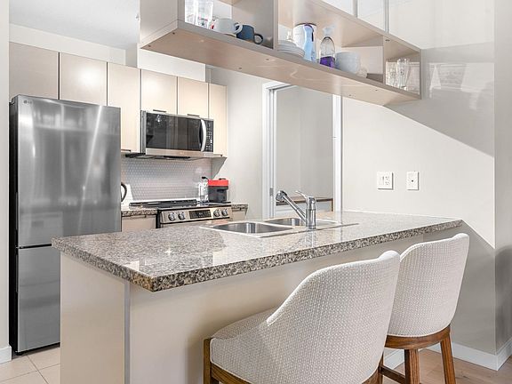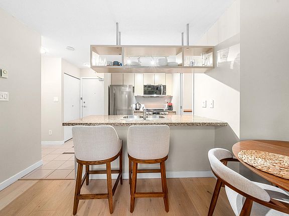 Well maintained, updated and OWNER OCCUPIED suite at the Freesia! The home features floor-ceiling windows, UPGRADED HARDWOOD OAK flooring, and open concept living. The kitchen has plenty of cabinet space and features BRAND NEW stainless steel appliances, granite counters and bar seating. The bedroom is large and comfortably FITS A KING-SIZED BED. There is also a large pantry with ample CUSTOM BUILT-IN STORAGE, IN SUITE LAUNDRY and a private outdoor WEST-FACING DECK that soaks up the afternoon sun. The strata has FULL TIME CONCIERGE service, a large gym and is pet and rental friendly. All this just steps to everything the Downtown Peninsula has to offer, including Emery Barnes Park, Yaletown, Davie Street, the Seawall and more! Owner occupied and possession available any time!