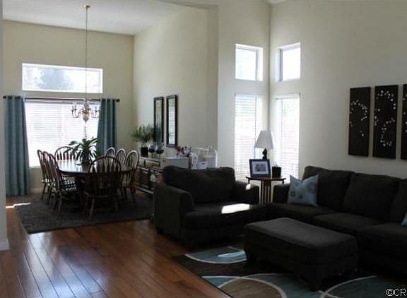 Gorgeous pool home in Corona! This house shows like a model, neutral colors, double door entry, unique hardwood flooring and cathedral ceilings opening to the formal living and dining room, cozy stone fireplace in the middle of the family room next to a beautiful remodeled kitchen with granite countertops beautiful backsplash and Stainless Appliances. Sliding doors opening to a big size pool with spa, covered patio and relaxing private backyard with lots of palm trees. All bedrooms are upstairs and of good size, master bedroom has vaulted ceilings and ceiling fan with a view to the pool, attached bathroom has been completely remodeled expanded shower with custom made ceramic stone flooring and tile throughout. 2 closets, one of them walkin. 3 1/2 Car Garage had the option to be converted into a 5th bedroom by builder which only needs a wall and carpet. Downstairs Bathroom plumbed for shower. Close to schools, Parks and Shopping. This house shows extremely well, it will not last! Brokered And Advertised By: Re/Max All Stars Realty-Corona Listing Agent: Rick Ranslow