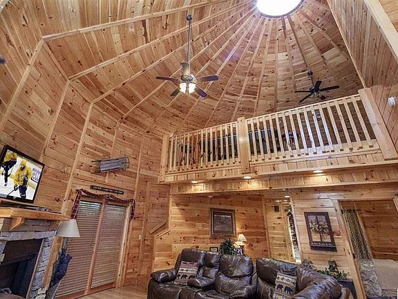 Cabin Name: "Round The Clouds" with a ***2019 Rental Income of $51,000 ***so far. This cabin is 2 1/2 stories in a circular design with high ceilings and loads of room, you can't go wrong here. The main living area offers a full kitchen with stainless steel appliances, lots of cabinet space, roomy living room with electric fireplace, fully furnished and decorated with class. The first bedroom is located on the main level with a full bath as well as a 1/2 bath. The finished basement is well served as a private suite, with two master bedrooms, one boasts a wet bar as well as a king size bed and private bath. The second master is absolutely amazing, with its own private whirlpool tub, electric fireplace, and private bathroom. The loft area can also serve as a 4th bedroom, but is used as a game room complete with pool table and game table. Outside are two decks, one offers the hot tub and the main living has a wrap around porch with a wonderful view of the mountains. The pictures do not do this cabin justice, you need to see it to appreciate how magnificent and unique it is.