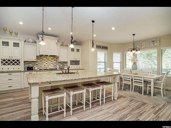 Built for entertaining inside & out! Gorgeous custom interior and secluded backyard make this the perfect home. This 10 year old home features an inviting open floor plan with a large great room and beautiful fireplace and mantle. Updated kitchen cabinets, over sized island and beautiful flooring. Master suite is stunning with double sided fireplace, ensuite, granite counter tops and walk-in closet. Large bedrooms throughout. Basement has a full kitchen, large gathering space, three bedrooms, media/theater room and 2 separate walk-outs. Attached is a 4 car garage with tons of storage. Relax on the huge deck overlooking the backyard and fire pit, waterfall, basketball standard and mature landscaping, a breath taking view. This home has room for everyone and quality you'll appreciate. Make your appointment today!