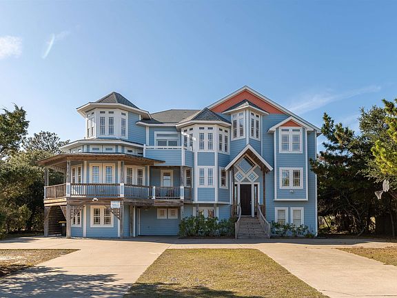“My Blue Heaven" is a custom-built oasis designed for hosting large groups of friends and family, featuring 10 en suites, two half baths, and an extensive home amenity package for an unforgettable Outer Banks getaway. Nestled on a spacious oceanside parcel on the northern end of Corolla's Whalehead Community, this stunning home includes a game room with a wet bar, a private heated pool and spa, an outdoor shower, tiki bar, horseshoe pit, volleyball court, media room, and elevator. The open-concept living room is ideal for gathering amongst family and friends or in one of the two lofted sitting areas for games or a good book. The gourmet kitchen boasts dual stainless steel appliances, a recently updated double oven, and both island and dining seating, complemented by a half bath and two king en suites. Enjoy ocean views to the east or take in the vibrant activity in the rear from the expansive surrounding decks. On the second floor, a grand foyer welcomes you with beautiful tile flooring and an oversized door. This level features a spacious media room for entertainment, five en suites for privacy, and one of two laundry rooms. Relax with a book or unwind in the hot tub on the covered porches. The ground floor game room provides entertainment for all ages, featuring a pool table, foosball, ping pong, and a stocked wet bar with a "drive-thru window" for poolside cocktails. With three en suites, a half bath, and a laundry room, this level offers the perfect space to relax after a day spent soaking up the sun on Corolla's beautiful beaches. Conveniently located just four lots from the oceanfront, this home is a short walk or bike ride to the direct beach access, local shops, dining, the historic Whalehead Club, Currituck Beach Lighthouse, and more. "My Blue Heaven" presents an ideal design for an unforgettable vacation experience and a lucrative investment opportunity.