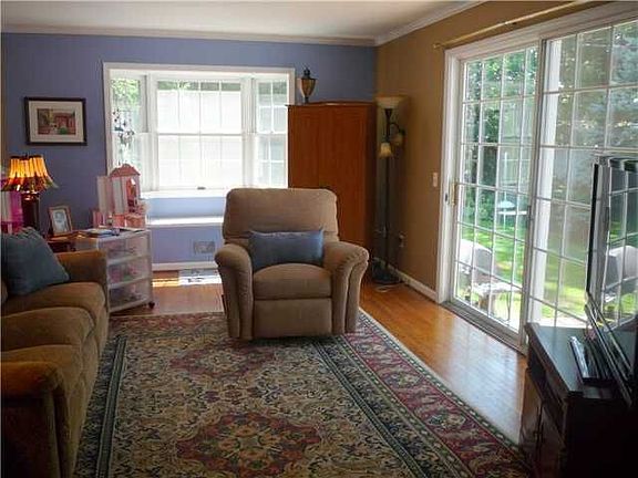 Light and bright with an open spacious floor plan. Ideal for entertaining. 4 bedroom Colonial, large master w/two closets. Wonderful Large Family room w/Sliders to Patio and private yard, Fireplace w/custom mantle in living room. Eat in kitchen w/portable island diswasher. Hardwoods -- new siding- windows- Air Conditioning- H2O all 2 yrs New.