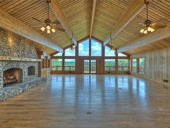 One Of A Kind! This 184 acre family estate, known as "Wolves Lodge" has been in the same family for almost 30 yrs. Custom Canadian Linwood Post & Beam home boasts one level with big, long range mountain views, small lake/pond, stream, barn, complete privacy and 15 min from Ellijay. Lodge home has 5BR, 4BA (huge rooms), 3 massive stack stone fireplaces, gorgeous wall of windows, 2 living rooms, truly WOW kitchen, walk-in pantry, sunroom, indoor pool area (dressing rooms), 2 car garage. Barn has 12 ft ceilings, 2 garage bays, concrete floor & small guest apartment. There's way too many extras to list all the features of this property. Fantastic opportunity for a corporate retreat, hunting lodge, family estate & more! (2 wells, 2 septics, 4 HVAC units, 65 kw generator, gated entry) Needs a little TLC (pool isn't functioning at this time) this property has so much potential!!!