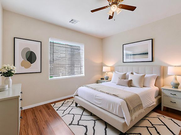 Welcome to this bright open floorplan single-story home featuring 3 bedrooms, 2 baths, a dining area and over 1500 sq ft. With refrigerated air, fresh paint, and no carpet, this home is move-in ready. The well-equipped kitchen features a new gas range and a pantry. The primary bedroom has an en-suite bathroom with a garden tub, separate shower, and a walk-in closet. Enjoy the low maintenance backyard and covered patio perfect for entertaining. View this one before it's gone!