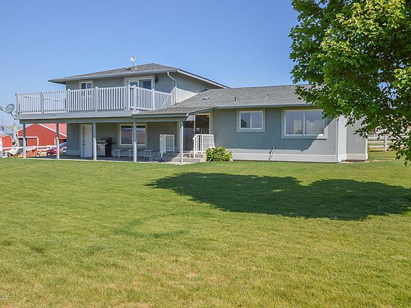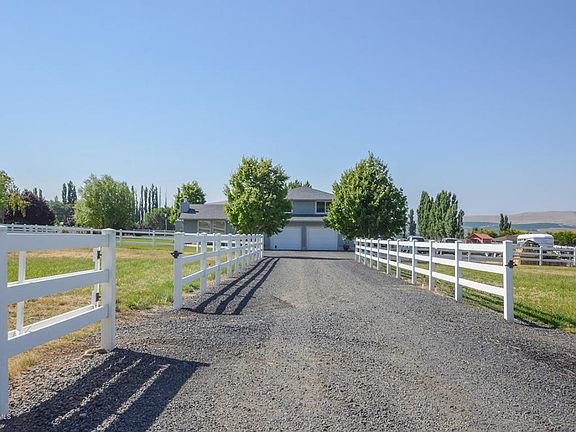4+ acres that has been very well maintained and is ready for animals. Beautiful views of Mt. Adams, surrounding hills and valley, including some views of Mt. Rainier. This level property is crossed fenced with 3-rail White vinyl fencing. This creates 3 irrigated pastures, a separate dry pasture and a corral area with a 4-stall barn and storage. Don't forget the chickens, they have their own place to call home with an enclosed fenced area and coop. There are 2 additional moveable storage/skid sheds (1 for hay, 1 for garden equipment). Lots of room for garden space. All offers possibility of self-sustained farming. Home updates include laminate wood flooring and granite countertop in kitchen, heat pump, stucco siding and slider from Master bedroom to large private deck with incredible views. Interior offers both formal and informal living space. Electric fireplace in family room included.