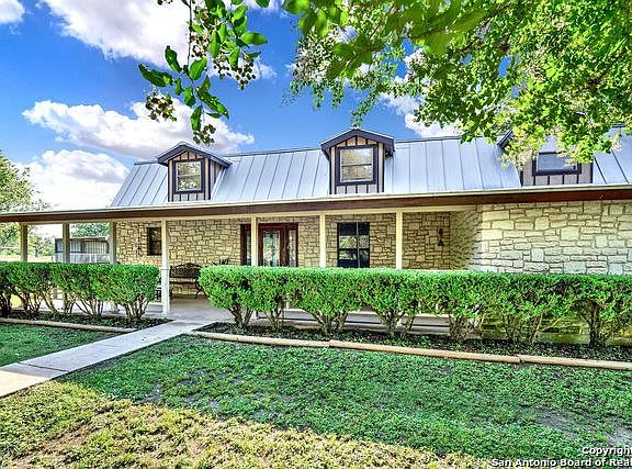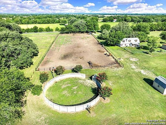 7.5 acre horse lover's dream property!! This one of a kind multi-use homestead offers a two story rock ranch house with 3 bedrooms, 2.5 baths and a gorgeous sprawling front porch. The kitchen and bathrooms have been updated and the open floor plan with a fireplace is cozy and inviting! The owner's suite has a neat loft space as well as a hidden room through the closet which could be used as a safe room, gun room or even a small office! Upstairs are two additional bedrooms and a bathroom. You will also find a 20x30 carport, 20x30 workshop, and a 40x120 hay/equipment shed. The horses will be right at home with an appx 300x100 arena, 90' lit round pen, tack room, 4 paddocks and a 4 stall barn! This property is move in ready and the possibilities are endless. Short drive into San Antonio! Additional 13 adjoining acres available to purchase. BMA rights available.