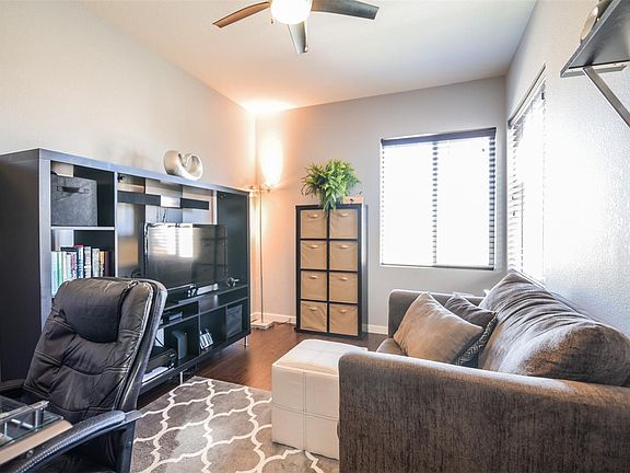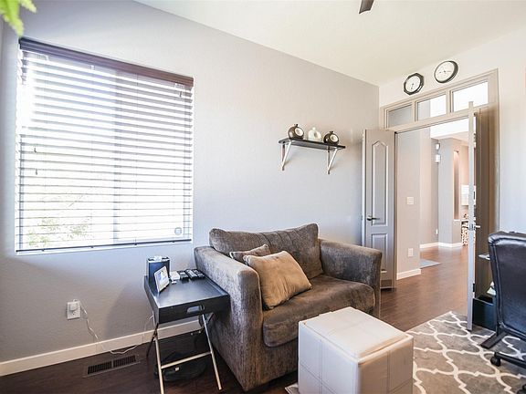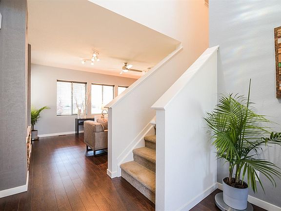 Immaculate! shows like a model home! It's like brand new inside and out! This Shea home has Beautiful Laminate Wood flooring on the main level with 3 Bedrooms, 2 Baths, 2-Car Attached Garage. Warm elegant with designer paint throughout. Main floor features Study w/ceiling fan; Great Room with Electric Wall Fireplace, Ceiling Fan, Recessed lighting - open floor plan with Gourmet Kitchen enhanced w/large island, eating bar, lots of cabinets, wet bar, Corian Counters, Tile backsplash, Dining area and 1/2 bath! Walk out to the large covered patio for all your outdoor enjoyment! Upstairs there is a Master Bedroom with Ensuite Master Bath with glass slider entry, dual sinks, large tile surround walk-in shower and organized Walk-in Closet! Two additional bedrooms w/ceiling fans on the upper floor along with full bath and convenient Upper Laundry! High ceilings throughout with detailed options. Professionally landscaped fenced yard. Close to Recreation Center, pool, Park and trail!