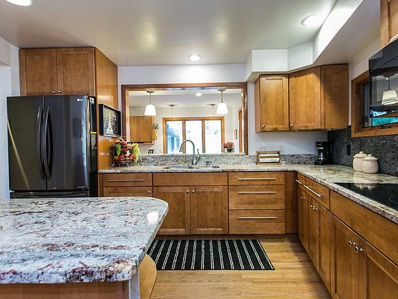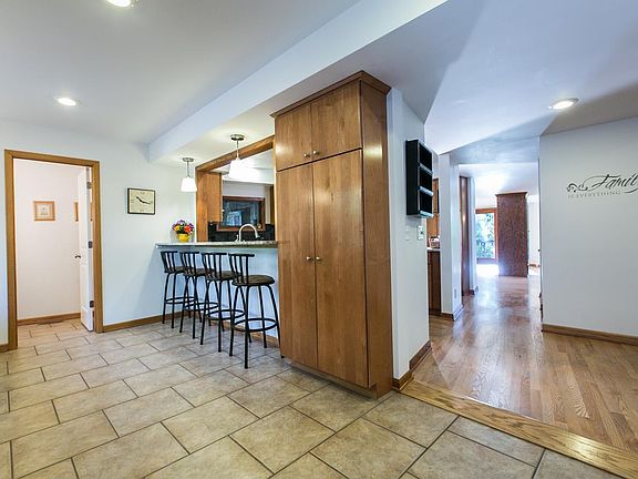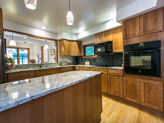 Beautifully Updated 3542sqft contemporary style home with 4 bedrooms includes a Lg master bedrm suite, 3 1/2 baths. Unique architectural design that is warm/cozy and light/bright spaces. Main floor has a 3 seasons rm, 2 front entries, Family rm w/wood burning fireplace, living rm, dining rm and laundry. Kitchen appliances included, central vac and lots of storage space. Decks and Patio. 3 car up + LL workshop on .86 acre private wooded lot. A must see to fully appreciate! $375,000