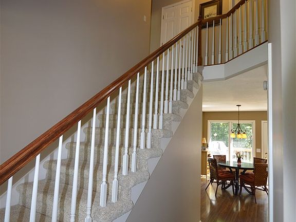 Gorgeous one owner home extremely well cared for! Newer beautiful wood laminate flooring in foyer, hall, half bath, kitchen, and dinette! Carpet on 1st floor, 2nd floor and stairs is only one year old! Ceramic tile floor in master bath and hall bath! Kitchen features nice raised panel cabinets with plant/plate shelving above and roll out drawers! Also new countertops and tile backsplash about two years ago! Center island with bar, corner sink with views, pantry, and much more! Family room with cozy fireplace! Front sitting room with window ledge, crown molding, and french doors with beveled glass! Half bath has pocket door and pedestal sink. Gorgeous views out the back of this home or from your two tiered deck with railing of the wooded association common grounds behind - you might see the occasional deer! BIG BEDROOMS with some cool touches too! Spacious master bath with jet tub and walk-in closet. FINISHED BASEMENT with a real nice wet bar area, half bath, and large storage room! Cool niches in lower level as well! Den could be a 4th bedroom if needed though there is no egress. Garage has a storage space area. Nice covered front porch, laced ceilings, six paneled doors! Wow...don't think this one's gonna last long!!