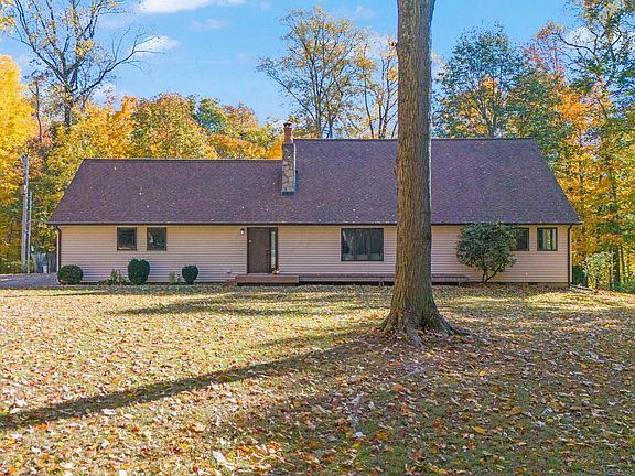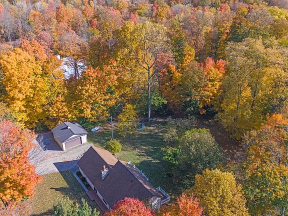 *Showings begin 10/25. Nestled amidst a serene 7.91 acres of wooded landscape, this stunning 3BD 2BA home offers the perfect blend of modern comfort. Step inside to be greeted by an open layout, featuring a floor-to-ceiling fireplace. In the kitchen find SS appliances & granite countertops, leading out to a composite deck perfect for indoor/outdoor entertaining! Entry level offers laundry, 2 bedrooms and a full bath. Upstairs enjoy your primary suite with its very own composite balcony, perfect for enjoying the views - A full bath with a large tiled shower - and a spacious loft perfect for a secondary family room, office space, or kids play space. Attached 2-car garage - an additional 24x24 pole barn provides ample space for storage or hobbies. This private, serene home is ready for you!