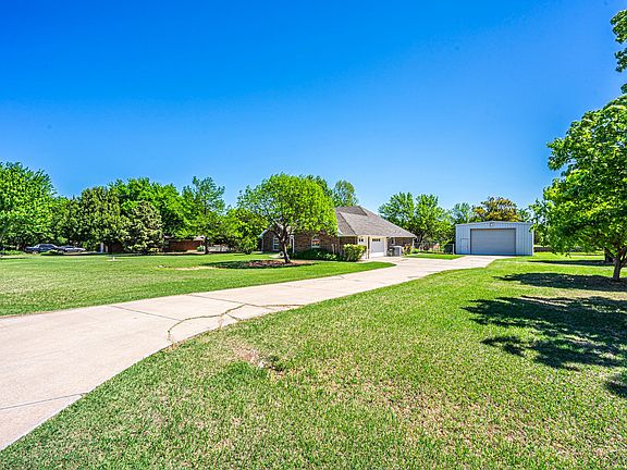 Wonderful 4 bed home on 1.77 acres in Deer Creek Schools. Owners just finished replacing Bedroom carpets and installing some vinyl plank flooring in the Living and Formal Dining. They've also replaced many of the fixtures and repainted the home, among other things. The home is move in ready and includes a walk-in storm shelter in the Master Closet, a beautiful 4 Seasons type Sun Room just off the Dinette and Living Room! You'll also find a gas log fireplace in the Living Room, a pantry closet by the kitchen and a big Laundry Room leading to the 3 Car Garage where you'll find attic access and the lawn sprinkler controls. The back yard is partially fenced and makes a great place for pets. Need some extra storage? How about a 30' x 40' shop building with a 12 foot overhead door, concrete flooring, insulated with electricity inside, and a sewer connection outside for an RV. Don't miss this one!