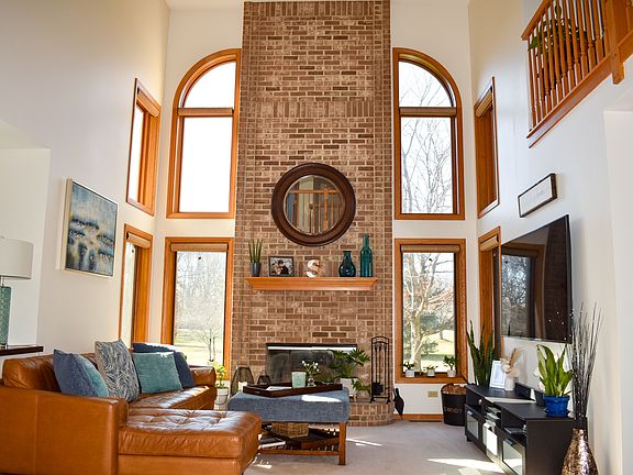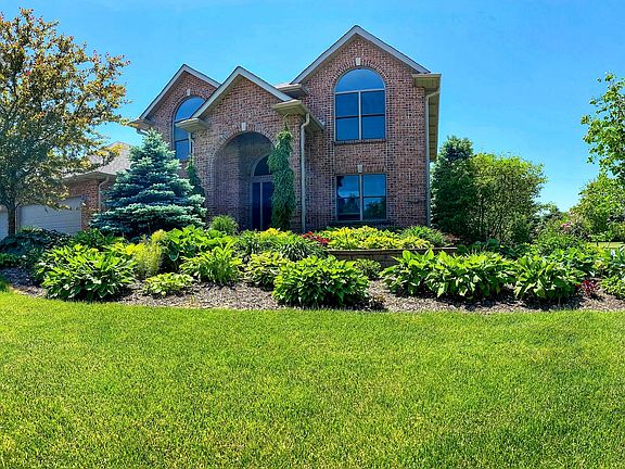 This meticulous home, nestled in the quiet picturesque subdivision of Breezy Lawn Estates, won't last long! This home sits on a beautifully landscaped one acre lot. The grand entry features volume ceiling and impressive multi-tiered chandelier. The bamboo flooring runs through the foyer, dining room and front room, which can be used as an office. Through the hallway you will enter the great room, glowing with natural light surrounding the two story, floor to ceiling, brick fireplace. Off the great room is the family room and updated gourmet kitchen, which boasts quartz countertops, high-end Thermador appliances and gas cooktop, Sub Zero refrigerator, and dual beverage and wine coolers built into the custom island. This dream kitchen also has soft close cabinets and dimmable under cabinet lights which extend into the butler's pantry. From the kitchen, you can step onto your patio and relax under the expansive pergola overlooking the serene backyard. The wrap around perennial garden has blooms for every season! On the second floor are three bedrooms, each featuring vaulted ceilings, and a loft that overlooks the stunning great room. The partially finished basement offers two additional rooms that could be used as bedrooms, home gym, or another office space. Other home upgrades and features include: recessed lighting, central vac (house/garage), tankless water heater, whole home intercom/radio system, surround sound wiring in family room, new pella windows/doors (2018), new roof and siding (2018), radiant heated 3 car garage, hot/cold softened water in garage, underground wire for pet containment, and sprinkler system around the garden. This home is beautiful, inside and out, and a must see!