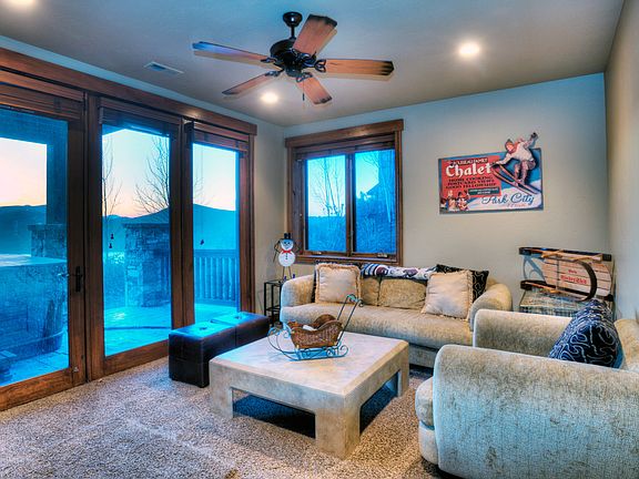 This timeless mountain home will not disappoint. Designed by William Neff Duff, this wonderful layout provides the opportunity to enjoy panoramic views of Mt. Timpanogos, Deer Valley Resort, the Outlaw Golf Course and the Jordanelle Reservoir. Custom home features include second master on the main level, four bedrooms, family room, Sub Zero and Wolf appliances, central air, hard wood flooring, automatic blinds, built in BBQ, and hot tub. Additional features include custom wine cellar, steam shower and zoned climate controls. Quality, high eend finishes throughout. Furnishings available separately, except for certain artwork.
