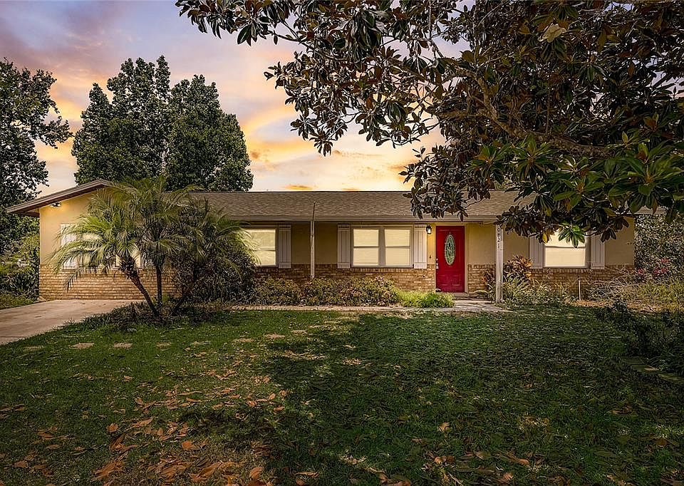 Welcome to this charming 3 bedroom, 2 bathroom home located on a corner lot in beautiful Leesburg, Florida. As you enter this sunny home, you'll be greeted by an open and airy floor plan with so much natural lighting brought on by the beautiful french doors in the back of the home. The large living room is a perfect spot for relaxing or entertaining friends, family, or guests, while the dining area is close by and a great space for enjoying big, memorable meals. The spacious eat-in kitchen right off the dining area has granite countertops and tile floors and features gas cooking, modern stainless steel appliances, ample counter space and solid wood cabinets with tons of storage. Just off the kitchen is an oversized laundry room that will also lead you into a heated/cooled converted garage. This generous flexible space could be used as a second living area, in-law suite, craft room, or private workout area, with the possibilities being endless due to its enormous size. The primary bedroom is located directly off the living area and features a walk-in closet and private ensuite. The two additional bedrooms are located on the other side of the home. Both are sizeable enough for additional family members and guests. The full guest bath is also generously sized and located conveniently between the two bedrooms. On your way through the french doors to the backyard, you will notice the upgraded pavers under the fully screened in lanai. There you can relax and enjoy your privacy while you listen to the wind blowing through the trees that shade the generously sized backyard. There is also a filter system against the house that was for a Koi Pond that can easily be re-converted if you wish. This unique home is on a corner lot with no HOA, so there is an additional side entrance to the yard with a double gate from the side street to bring the boat or RV through, as well as a shed for storage. The roof was redone in late 2022. This home is conveniently situated near shopping, dining, and entertainment. Enjoy proximity to the many parks, nature trails, boat ramps, fishing piers and picnic areas of Leesburg and nearby Eustis and Tavares.