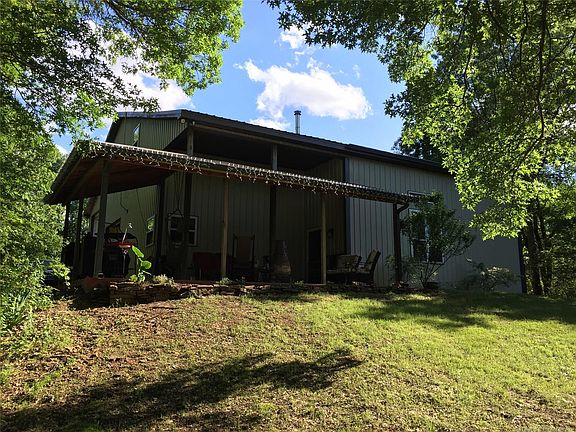 UNIQUE & SPECIAL METAL HOME WITH LODGE INSIDE! Come see the surprise inside as you open the door of this well built metal home to find a "lodge" inside! With lots of wood decor, this home is like a cabin in the woods! Enjoy the seclusion & privacy on your covered porch & patio as you watch the wildlife & enjoy the quietness. All of this also includes a very large garage with plenty of room for all of your lake toys. Home includes 3 bedrooms, 3 bunk rooms & a loft! Sleeps lots of family & friends!