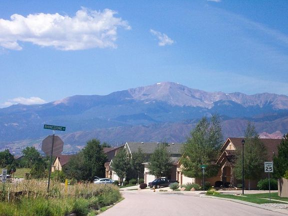 Built green, this beautiful and energy efficient stucco townhome is located at the corner of Old Ranch Road and Powers Boulevard, just north of Pine Creek. Easy access to the AFA, new hospitals, shopping , and I-25. Spacious, open floor plan with 9 foot plus ceilings on every level. Hardwood floors in entry, kitchen, and living room. The kitchen includes a stainless steel refrigerator, 42 inch maple cabinets, pantry, and a dining nook. Separate formal dining room. Walk out to the covered deck from the kitchen for cookouts. Family room and living room. Three bedrooms up--master bedroom has a 5 piece bath and walk in closet. Upper level laundry room includes washer/dryer. Central air conditioning and a gas fireplace in the living room. Attached 2 car garage. Trash removal and exterior maintenance provided by HOA.