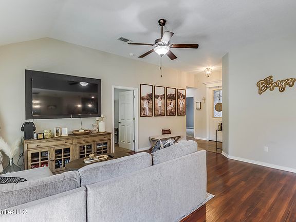 Located in the heart of Diamondhead, this 3-bedroom, 2-bath home features an open floor plan with vaulted ceilings that create a bright, spacious feel as soon as you walk in. The kitchen is open to the dining and living areas and includes stainless steel appliances, granite countertops, and a large island with a breakfast bar—perfect for both everyday meals and entertaining. The primary bedroom comfortably fits a king-size bed and features tray ceilings with crown molding. The ensuite bathroom includes a granite double vanity, a soaking tub, and a separate shower. The split floor plan keeps the primary suite separate from the additional bedrooms for added privacy. Out back, enjoy a covered patio and a fully fenced backyard with plenty of space to relax or play. The Diamondhead community offers a variety of amenities including pools, golf courses, tennis courts, parks, playgrounds, walking and biking trails, pickleball courts, a marina, a clubhouse, restaurants, and even a private airstrip—making it easy to enjoy an active and convenient lifestyle!