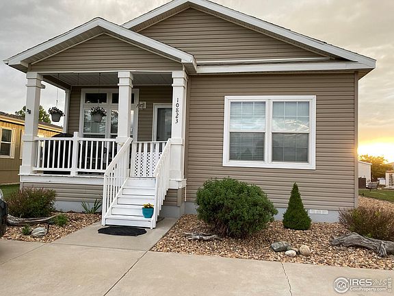 Pride of ownership shows throughout this beautiful 3 bedroom 2 bath home! You will not be disappointed when you enter this meticulously maintained and move in ready home. Welcome to your pottery barn bungalow in the lovely town of Firestone. Enjoy the Colorado evenings relaxing on your front porch in this quiet community. All appliances are included. Storage shed is over sized and equipped with electricity which makes it perfect for your workshop or she-shed. Not to be missed! Buyer to be approved by the Eagle Crest Community prior to purchase. Proof of funds to accompany offer. Lot rent is 700/month.