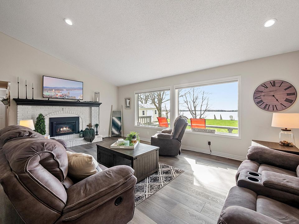 This beautifully renovated home offers 105 feet of pristine shoreline on the sought-after Chippewa Lake - affectionately known as "Big Chip" — a true paradise for fishing, boating, and swimming. Recent updates have elevated the home throughout, including new kitchen cabinets, countertops with center island, and stylish backsplash, all-new flooring, air conditioning, water heater, furnace (2016), two gas fireplaces, and upgraded appliances. Additional improvements include a walk-in shower in the lower level, a commercial-grade Speed Queen washer and dryer, new garage doors, rebuilt driveway retaining walls with pavers, fresh exterior and interior paint, and more.