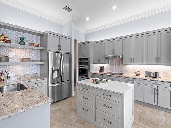 Gorgeous Julia model with 3 bedrooms + den, 3.5 baths and an expanded screen enclosed patio overlooking a private lake with no littoral plants. Over $200,000 in upgrades. Highlights include portable generator hook up, impact glass entry doors with keyless entry, several kitchen and bathrooms upgrades, custom built-in wall units in Great Room, Den and Bedroom 2, surround sound speakers, crown molding, custom closet systems, newer kitchen appliances and washer/dryer, upgraded landscaping with lighting, accordion storm shutters, whole house gutters, 2019 Carrier A/C with HEPA filter and so much more! Call for a full list of upgrades. Some furniture available.