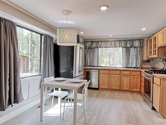 Welcome home! This charming mountain get away is what Colorado is all about! This fully remodeled ranch boasts vaulted ceilings, an updated bathroom, and an open family room. Cozy up to your pellet stove during those tranquil snowy winter days and nights. The stainless steel appliances, full size washer and dryer and bar are perfect for everyday living. The loft adds the perfect feeling of getting "away." Your back deck is full sized for entertaining. The deck is complete with custom wood planters that can also be used as coolers built in to the deck. Some notable additional improvements are; New roof and gutters installed December 2020. Brand new gas range. Brand New carpet. Brand new vinyl flooring. Brand new remodeled bathroom. This one won't last! Set up your showing today!