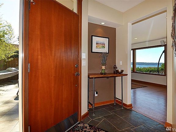 A singular mid-century estate, gated for privacy and perched on a small bluff. Mesmerizing Puget Sound vistas as your backdrop to cool breezes and soft sounds of nature. Open floor plan and striking wall of windows greet southwest sun. Entertain and dine on your patio with dazzling views, arbor, hot tub and waterfall. Lower level a 'party palace' for all your media and toys, plus beverage bar and office nook. New siding and many, many updates. Feels a million miles away, yet close to everything.