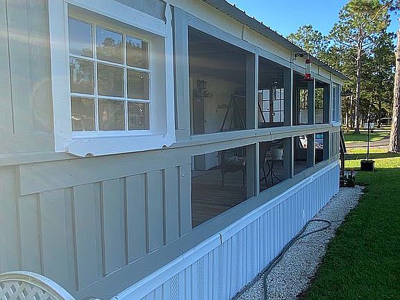 Beautiful totally renovated 1999 14x64' Fleetwood mobile home with high end everything! New Metal Roof, New High Efficiency HVAC Unit. Electric bill averages $80.00 per month. New Appliances, Washer and Dryer Included, New Plumbing, throughout, New 40 gallon hot water heater, New Waterproof Laminate Flooring, New Light Fixtures and ceiling fans with all LED bulbs, All New Kitchen including Appliances, Over Range Microwave, Dishwasher, New Cabinets, New Counter Tops, New faucet and Stainless Steel sink. All New Bathrooms including Sinks, Vanities, Toilets, Plumbing Fixtures, Tub, Waterproof Wainscoting on walls. Home has new New Underpinning all the way around including porch, 8 foot by 30 foot Covered screened Front Porch leading to a 10 foot by 26 foot deck with a covered grilling station and covered potting bench. 8 foot by 12 foot garden shed. This is a must see in a great neighborhood at a great price. Located in Cypress Acres Mobile Home Park. Park is 55 and older community. Potential resident would need to pass a background check by the park. Very nice private lot faces field and woods. Lot rent is $400 per month and includes water, sewer, lawn care and trash removal. Home shown by appointment only.