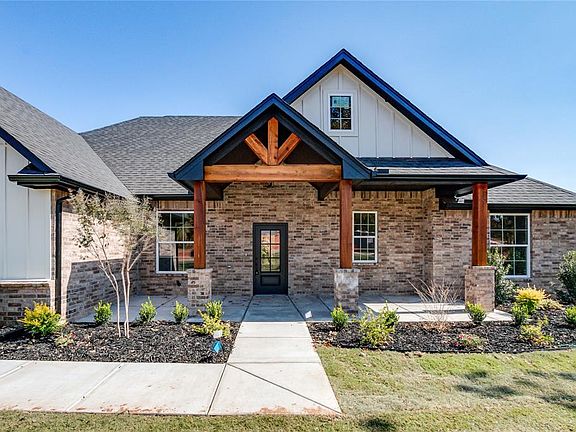 This magnificent new home located in Guthrie, sits on .84 acres and is a MUST SEE! Step into a grand entry with a beautiful cathedral ceiling leading to an open living area filled with natural light, custom built-ins, and a cozy fireplace. The open-concept kitchen and dining area are perfect for both everyday meals and entertaining guests. The kitchen boasts high-end appliances, a center island with bar seating, and ample cabinet space. There is a well-appointed study providing an ideal space for work, hobbies, or relaxation, this flexible space adds convenience and privacy to the home’s already impressive layout. With a large pantry, private study, large utility room, and an oversized powder bath, this home combines beauty with practicality. The primary suite is generously sized and boasts double vanities, a oversized walk-in shower, a spa like soaking tub, and an incredible closet. The large secondary bedrooms both include walk in closets and share a beautiful Jack-and-Jill bathroom. Step out back to enjoy the amazing backyard under the massive covered porch and enjoy the cool cozy nights next to the outdoor fireplace.