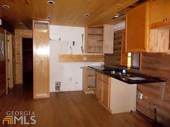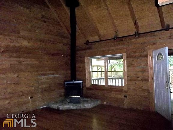 LOG CABIN HOME!!! Three bedroom two bath log home on full finished basement. Great wood burning stove in living room, master bedroom and loft area upstairs. Awesome rocking chair front porch to enjoy! Large wooden deck with bench seating, two car carport and storage building. Sold as is. Call today to schedule your showing!