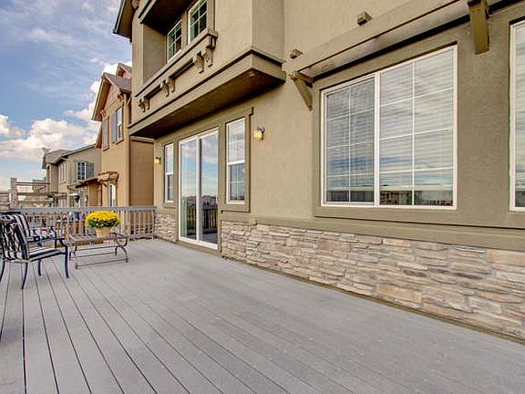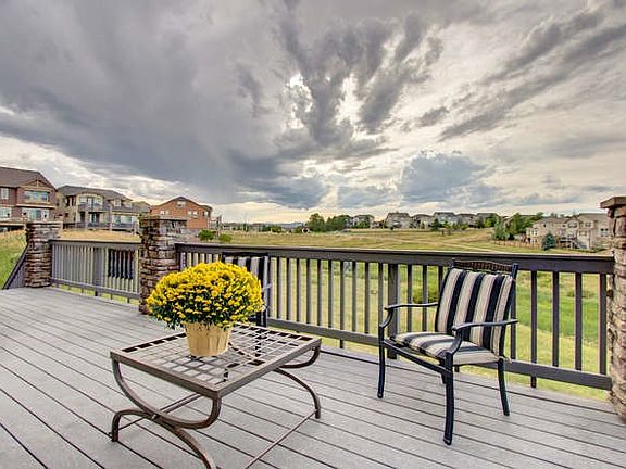 A true masterpiece in the Hearth! Talk about a beautiful home that includes 6 bedrooms, 5 bathrooms, a third floor loft, formal dining, butler's pantry, large laundry/mud room, a fully finished walkout basement, and a three car garage. New roof, fresh interior paint, new carpet! High end upgrades include soaring ceilings, dark wood floors, honed slate tiles, slab granite countertops, 42" cherry cabinets with roll out shelves, stainless steel appliances to include a brand new refrigerator, wine refrigerator, two story stone fireplace, 8' interior doors, beautiful light fixtures, jetted master tub, walk in shower for two, double paned windows, a Trex deck, and a stamped concrete patio. Enjoy the west facing back deck which overlooks open space, a wildlife pond, mountain views and spectacular sunsets! The great room, kitchen, and master bedroom all enjoy the stunning views as well! Walking paths lead to the foothills of Back country, Southridge rec center, and Paintbrush Park.