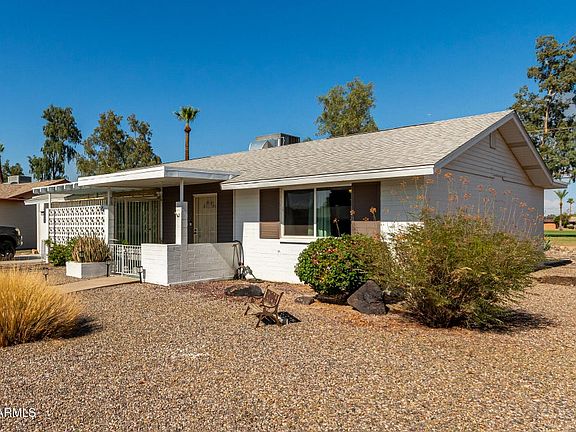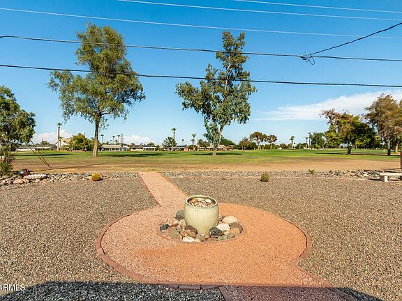 Unwind on the open back patio while taking in the peaceful golf course views perfect for enjoying those gorgeous Arizona evenings. This beautifully maintained 2-bedroom plus Arizona room offers comfort, convenience, and low-maintenance desert living. Enjoy a spacious garage, easy-care landscaping, and a charming front patio that welcomes you in. Inside, you'll find a cozy tile-floored living room, a bright step-down sunroom perfect for relaxing or entertaining, and a functional kitchen featuring granite countertops, rich wood cabinetry, and built-in appliances. The primary bedroom includes double French doors that open directly to the backyard oasis. As a bonus, for an additional fee, you'll have access to all the incredible Sun City amenities: pools, pickleball, tennis, bowling, & more.