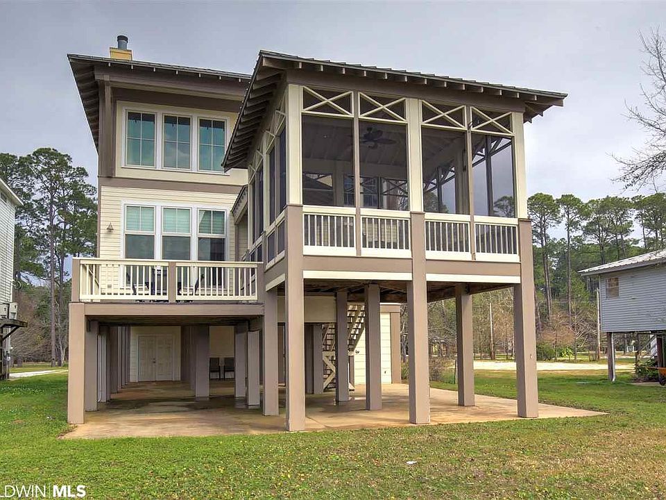 This home speaks of incredible quality, character with details and views of Mobile Bay. Architecturally designed and built by owner as permanent home. Beautiful hardwood floors, birchwood built-ins, stainless appliances, granite countertops, appliance pantry and an elevator from ground to top floor. Open floor plan with very clean lines. Screened porch for your morning coffee or afternoon sunsets. Geo thermal system with 2 units, 2 tankless hot water heaters. Turn key.