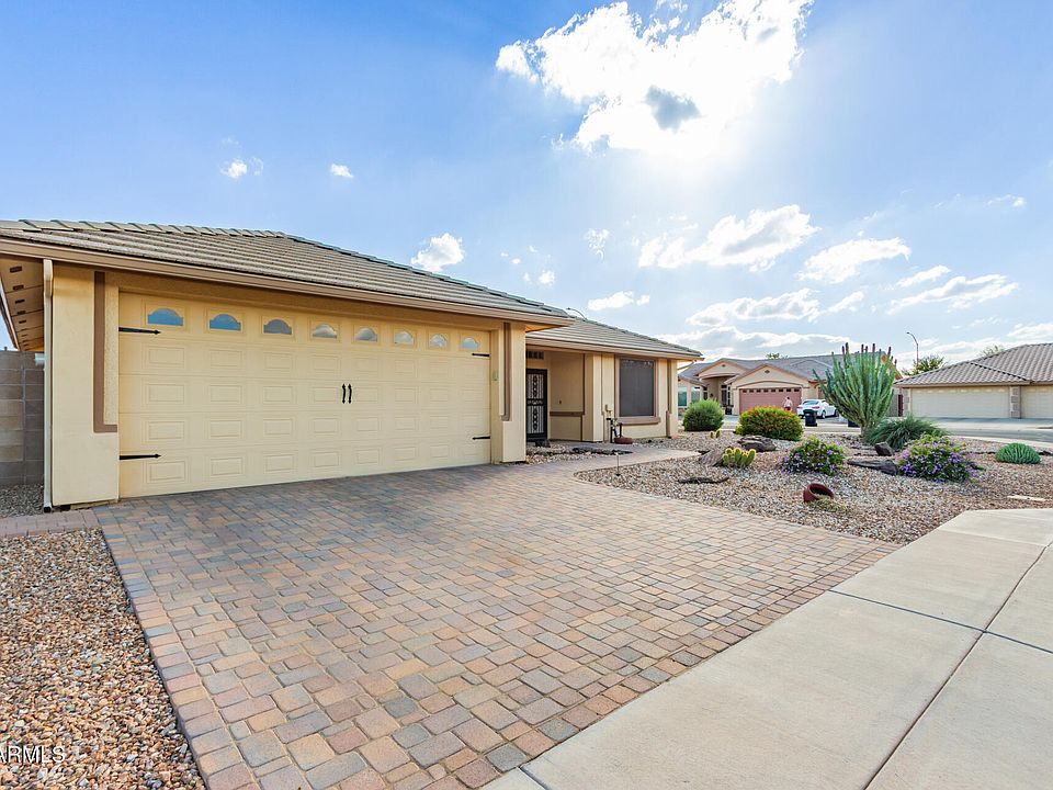 Enjoy the best of Arizona's outdoor living and sunsets with a paver driveway and patio, extended patio cover with elegant outdoor curtains, and plenty of space for relaxing or entertaining guests year-round. Located in a vibrant golf course community offering world-class amenities, including pools, fitness center, pickleball, tennis, and endless social clubs, this home invites you to live the active lifestyle you've always dreamed of!