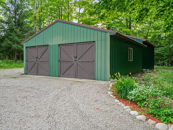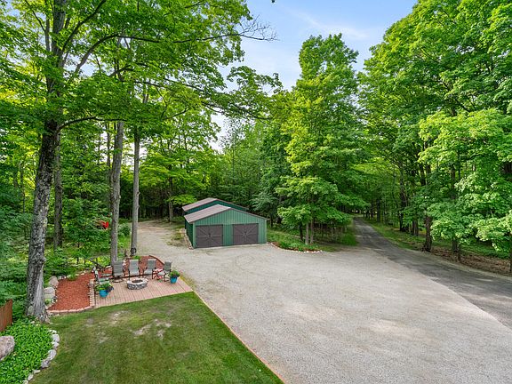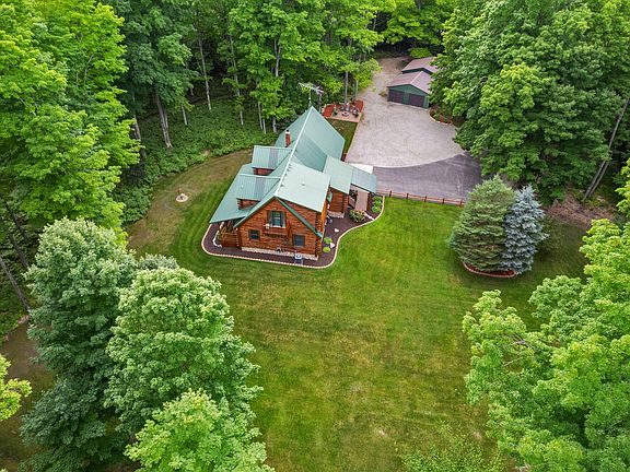 This meticulously maintained log sided home on 13.66 acres is absolutely adorable. The private, tranquil setting allows you to relax on the back porch or take a stroll through the trails of your woods. The main floor living space is open for great entertaining space while the lower level family room and office area provides additional fun or quiet space. The attached garage even includes an unfinished upper space, ready to be finished as an office or game room. The pole building includes a workshop and storage space for all of your Up North gear. The paved driveway, beautiful landscaping, and amazing garden area make this a great option for someone who values privacy.