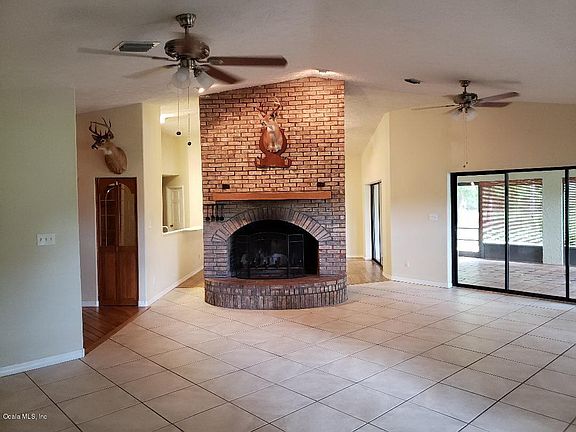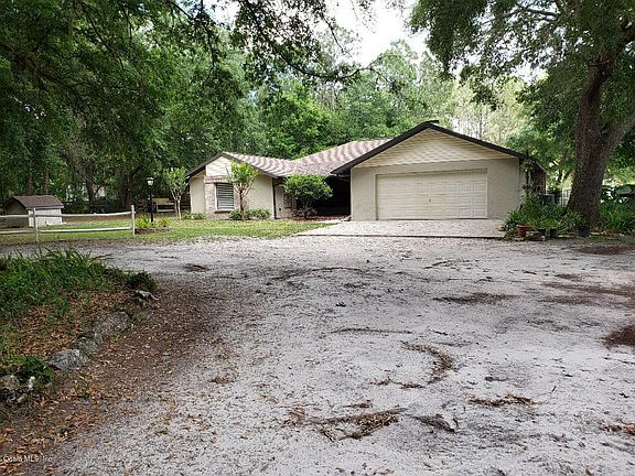 Stunning cleared and fenced park like 5 acres on very private flag lot surrounded by horse farms. Close to Ocala & the Villages, Shopping and the VA Medical Center. Move in ready very open floor plan boosting large tiled Great Room with window box seats and floor to ceiling brick fireplace opens to large screened enclosed back porch with Spanish tile flooring overlooking pool & patio, smaller fenced area and peaceful back & side yard. Entry & Front hall w/ wood floors & window box seat leads to guest bedrooms and bath and huge kitchen with all brand new stainless appliances, breakfast bar, large closet pantry, and room for an island. Loads of storage in the 3 hall closets and guest bath closet. Large Guest Bedrooms with walk-in closets. Spacious Master with huge walk-in closet w/ closet
