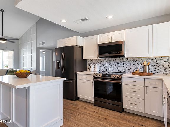 HUGE PRICE REDUCTION~~~~$15,000. Check out this model sharp completely renovated home for sale in Glendale AZ. Its light & bright open floor plan w/soaring vaulted ceiling WILL NOT disappoint. This stunning renovation includes: The all new kitchen w/new white shaker cabinetry and beautiful quartz counter tops, featuring upgraded charcoal stainless Wi-Fi enabled appliances, the built-in range/oven offers an on-board air fryer and upgraded stainless interior dishwasher. Extras include Alexa controlled recessed lighting, stylish accent tile back splash, and a gourmet prep sink make this kitchen truly special. Fresh 2 tone int/ext paint puts a new face on this beauty.