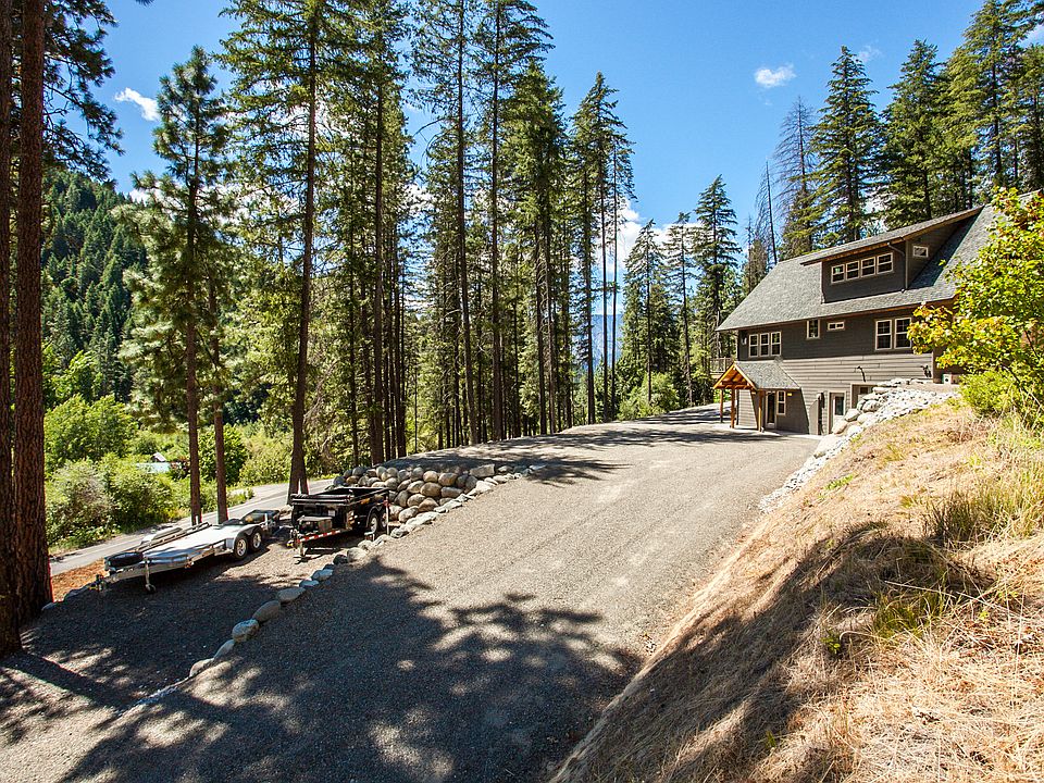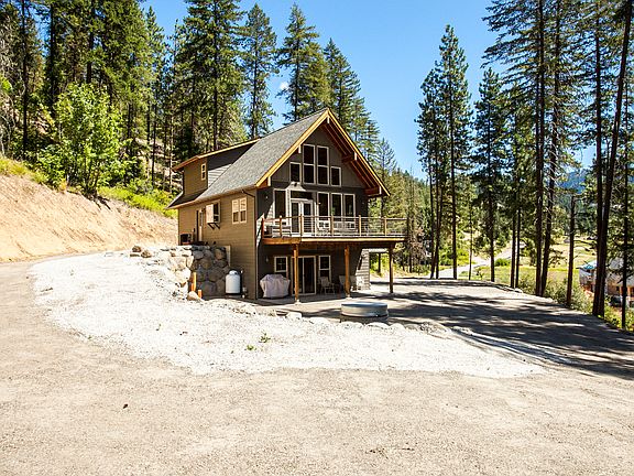 Custom built, beautifully designed home sitting on 10+ acres with incredible snow caped mountain and lush valley views. Located in scenic Eagle Creek Canyon only 3 miles from Leavenworth. Top tier finishes throughout such as cherry hardwood floors, granite counters, cherry cabinetry and warm Douglas Fir trim and doors. The open designed kitchen and living area with cozy gas fireplace opens to a large sitting and view deck, makes for a delightful entertaining space. Master bath offers heated tile floor and skylight. The downstairs family/media room or if desired 4th bedroom comes with full bath. Upper level main floor has driveway access. Property borders Walker Canyon Road offering direct access to miles of Forest Service roads & trail systems. Fiber optics in Eagle Creek Road and extra 40 am circut in garage for electric car charging or garage heating system. Landscape designed for minimum maintenance and equipped with outside gas fire pit set-up, existing fire pit hardware not included.
