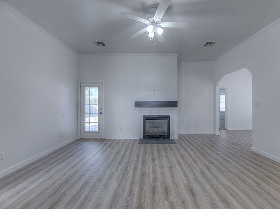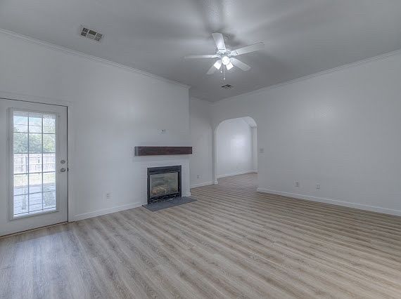 Nice fully fenced lot and covered back patio! New flooring and paint throughout as well as new HVAC. Split bedroom floorplan. Gas log fireplace. Master bath with double sinks, jetted tub, separate shower and two walk-in closets. Stainless steel appliances including refrigerator. No pets.