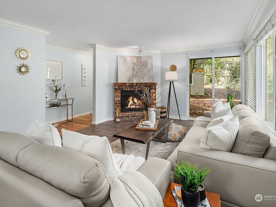 Rare corner 3 bedrooms 2 bathrooms home in Serenity At Juanita! Great open floor plan starting with a great room perfect for entertaining and with a fireplace to cozy up to. Updated kitchen features granite counters, stainless steel appliances and ample storage in cabinetry. Retreat to the spacious primary bedroom with full ensuite bathroom. Main bathroom includes full sized washer/dryer. Dedicated private backyard space with patio, covered and uncovered parking spaces and storage unit. Condo complex completely revamped in 2006. Amenities include secure gated entry, clubhouse, outdoor pool, athletic court and playground. No rental cap. Easy access to Totem Lake, Juanita Beach and much more!